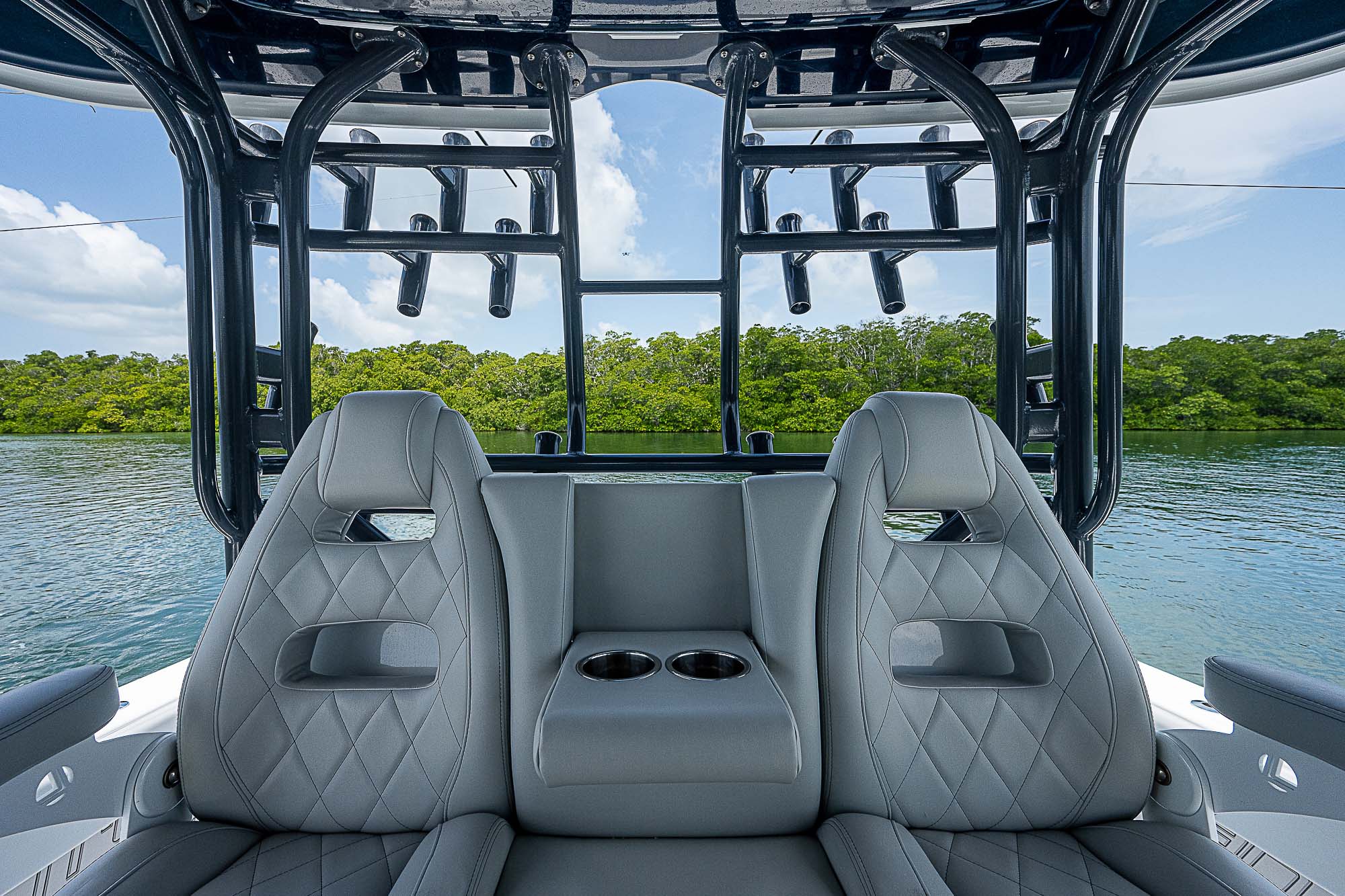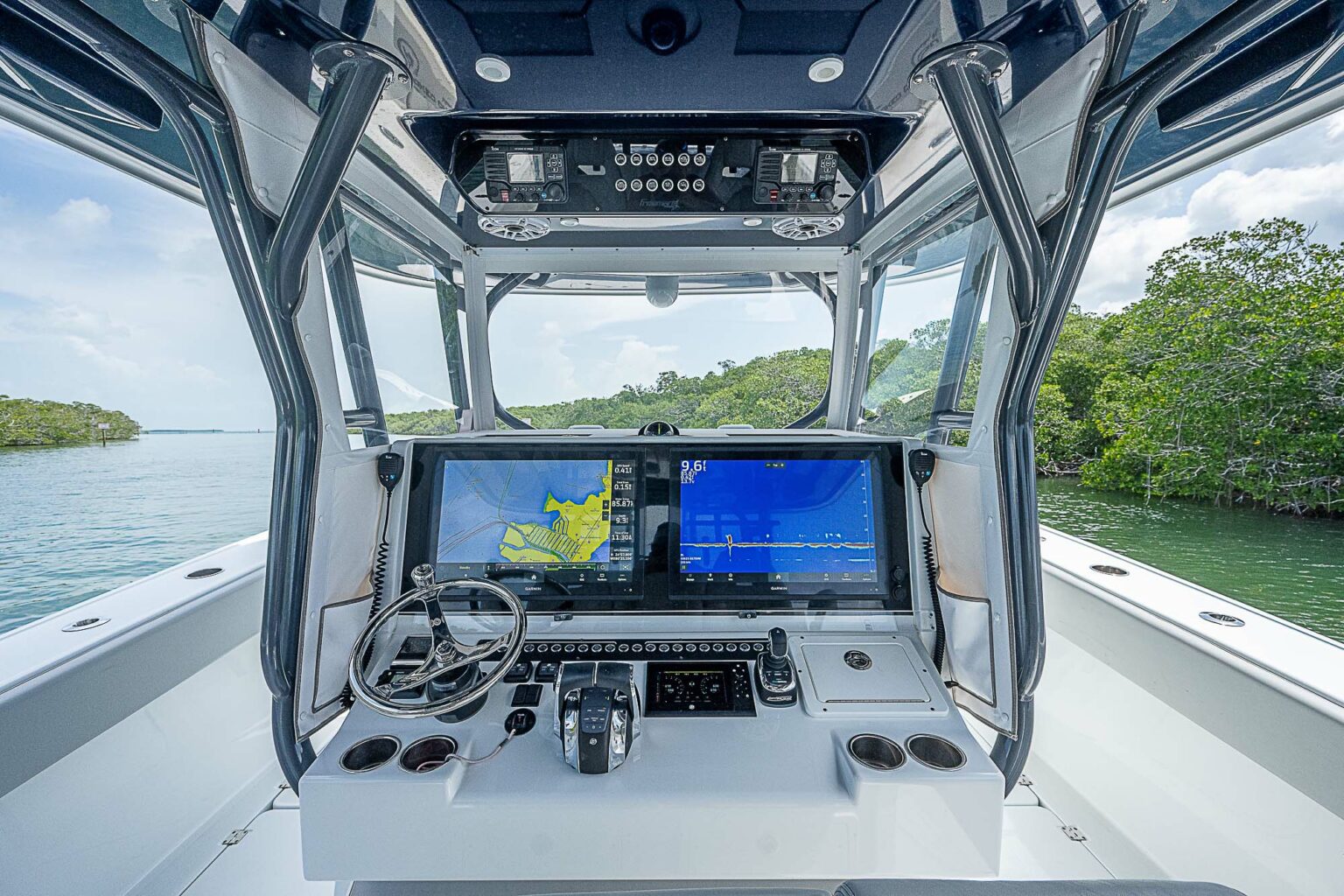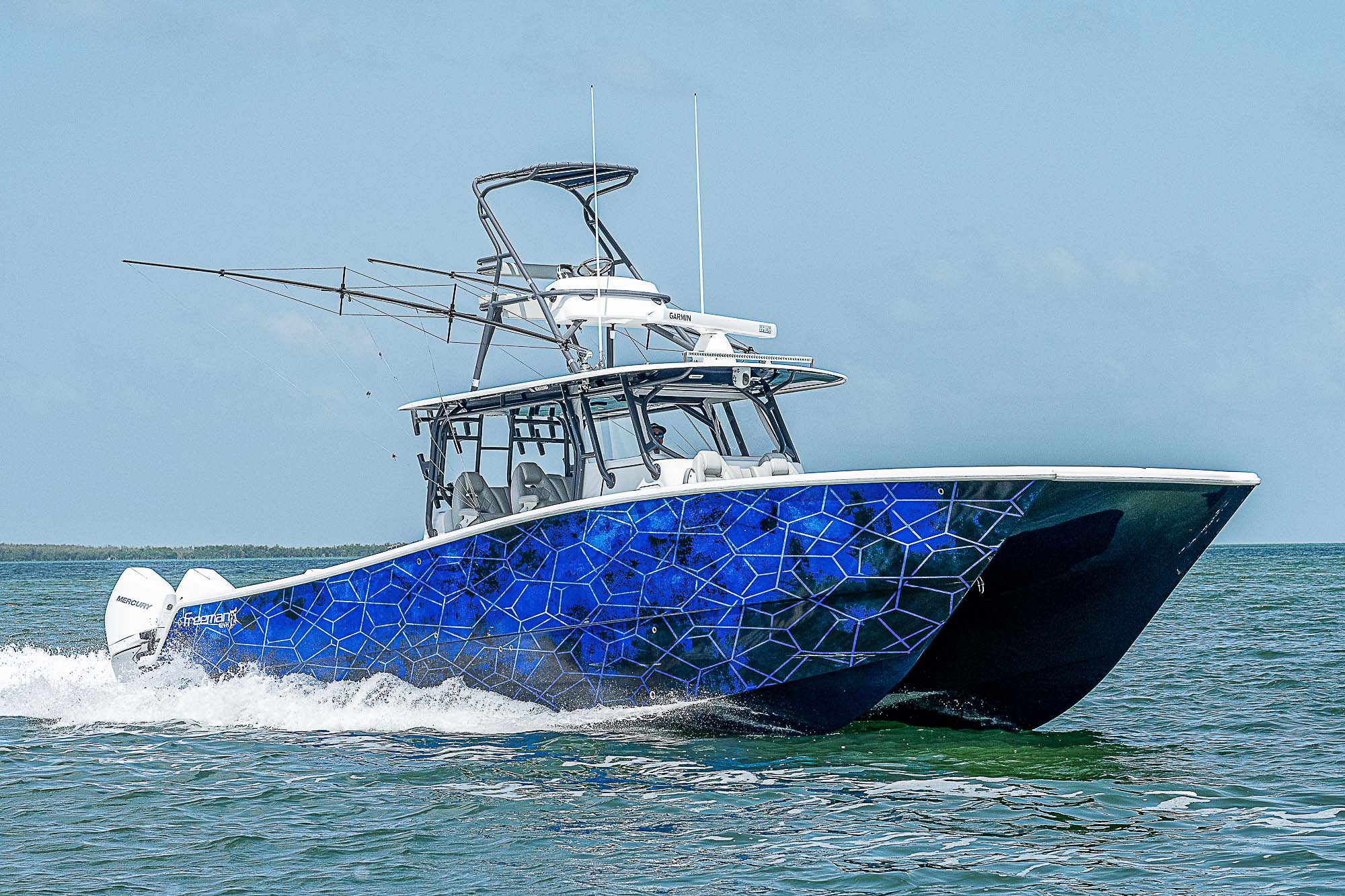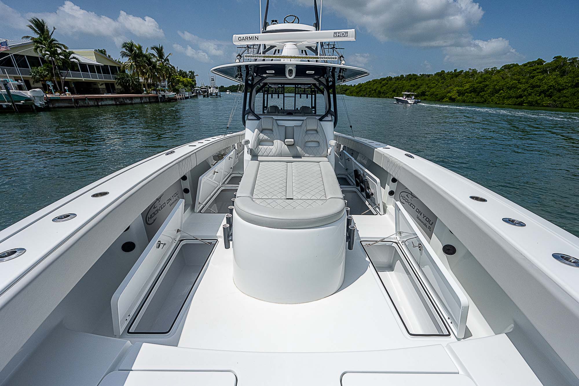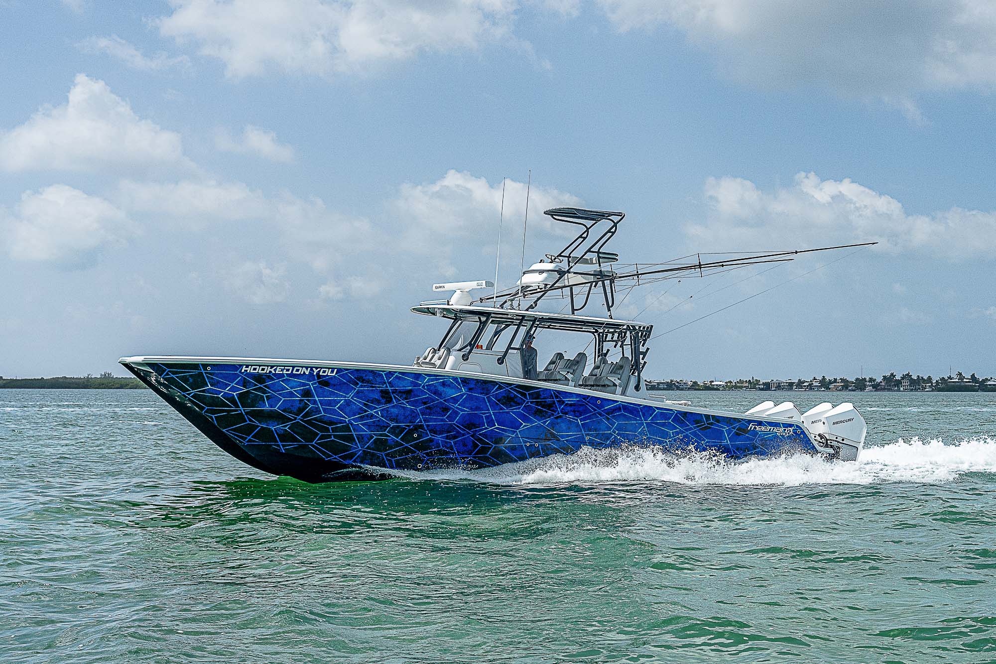 This 2021 42 Freeman is a fishing machine! It has double row seating, a rigging station, chiller plates, outriggers, foldable tower with controls, Garmin electronics, JL Audio Sound System, and more! This boat is perfect for fishing the USA or doing trips to the Bahamas! The engines currently have right at 1000 hours currently and have platinum warranty until December 2025.