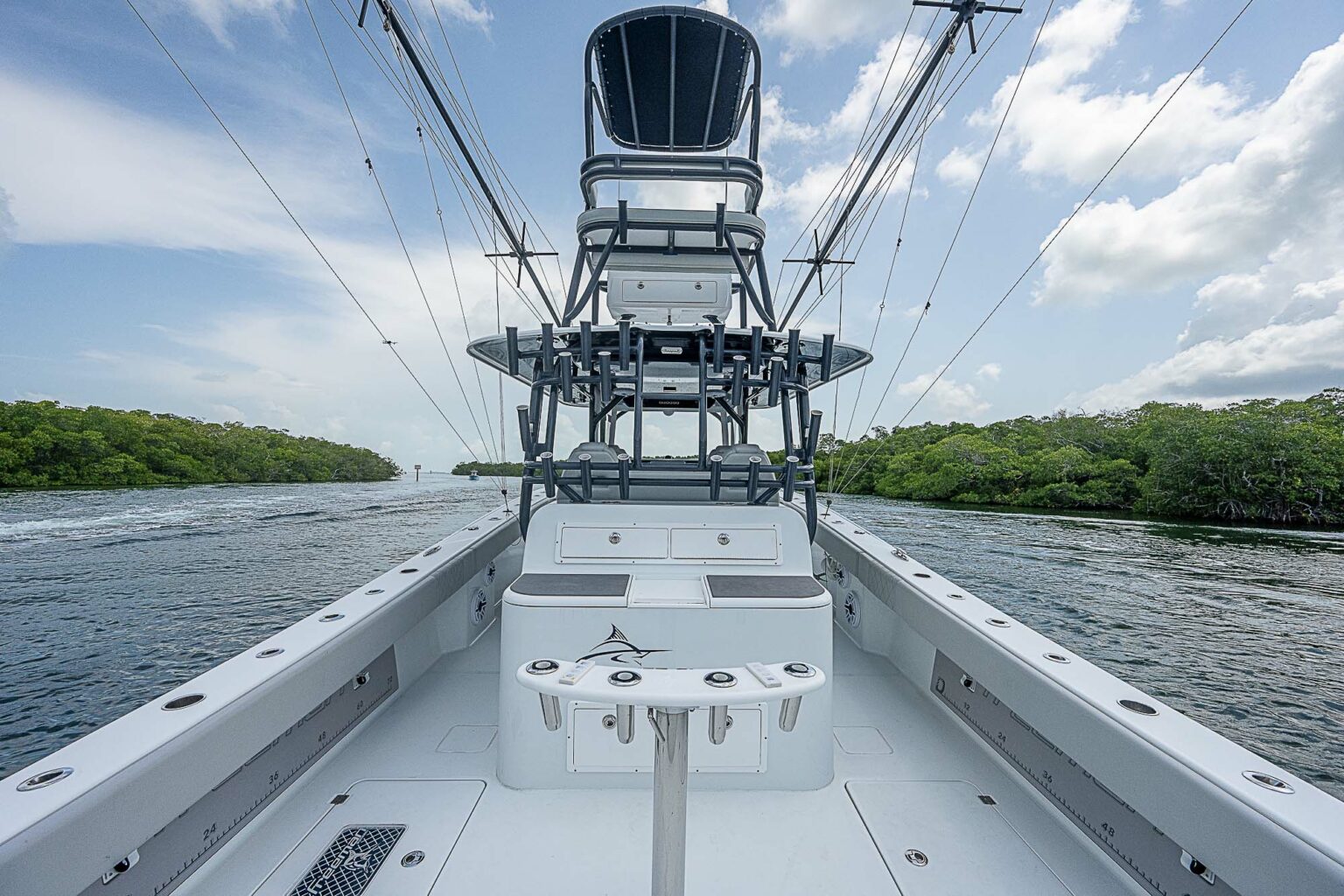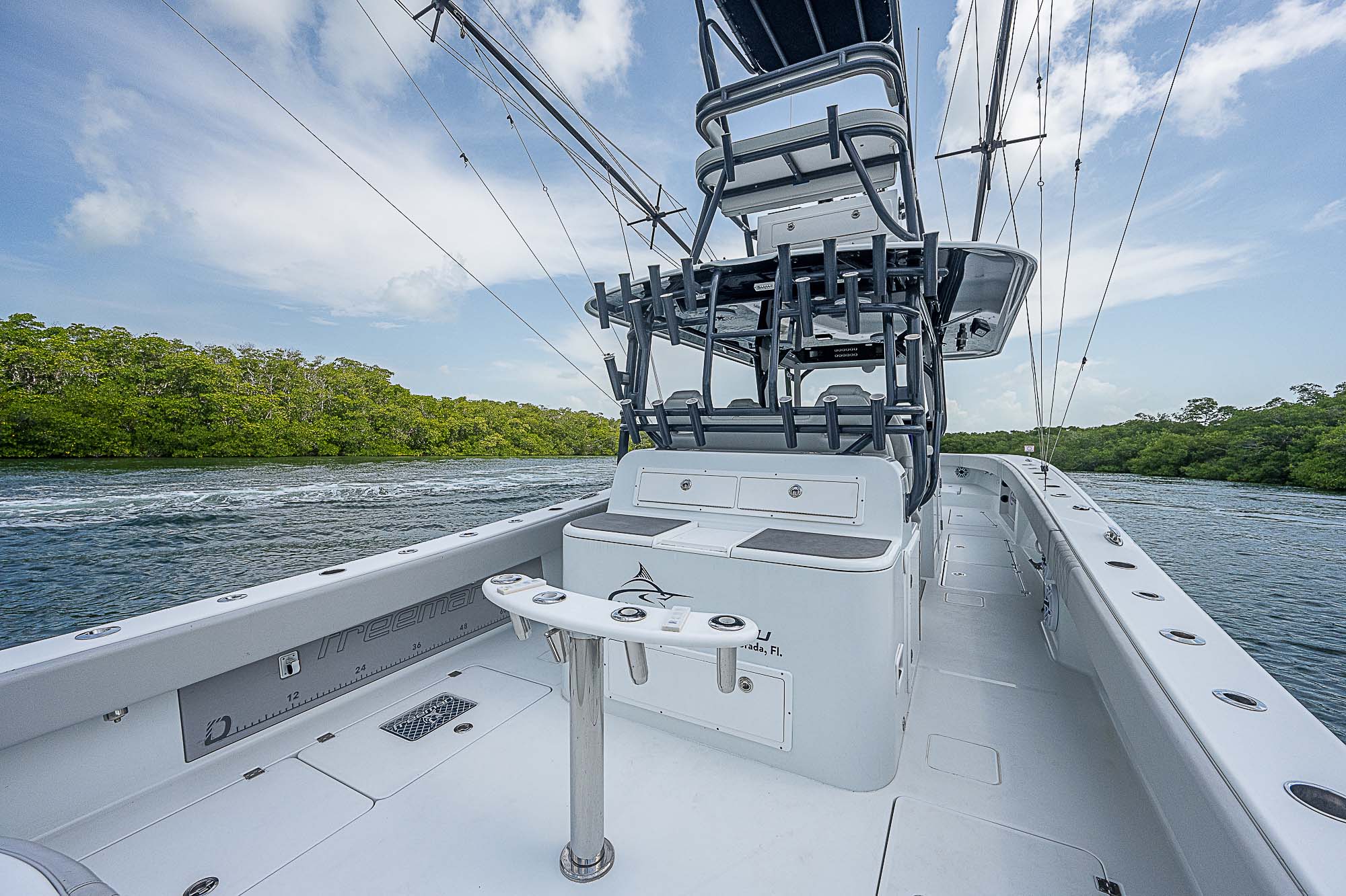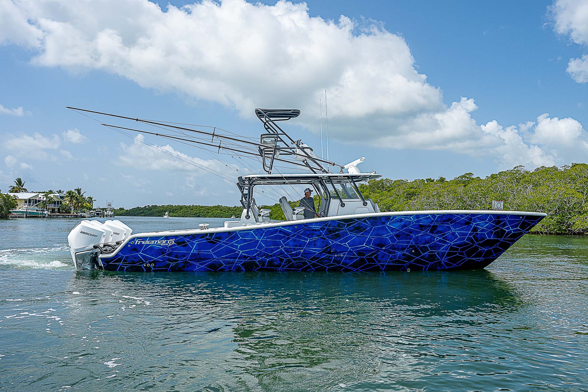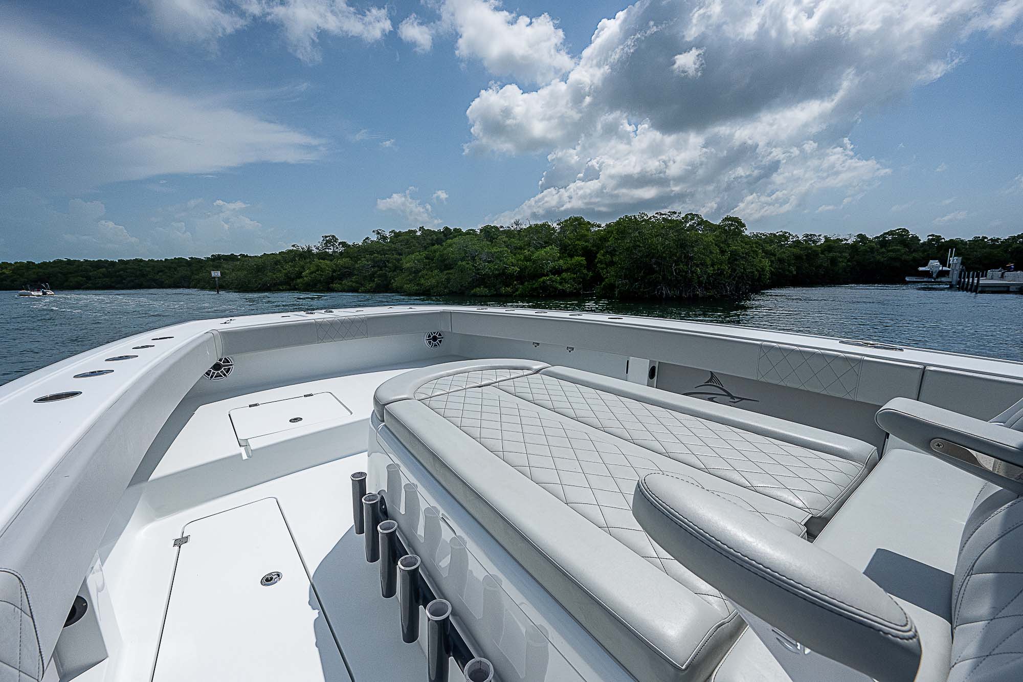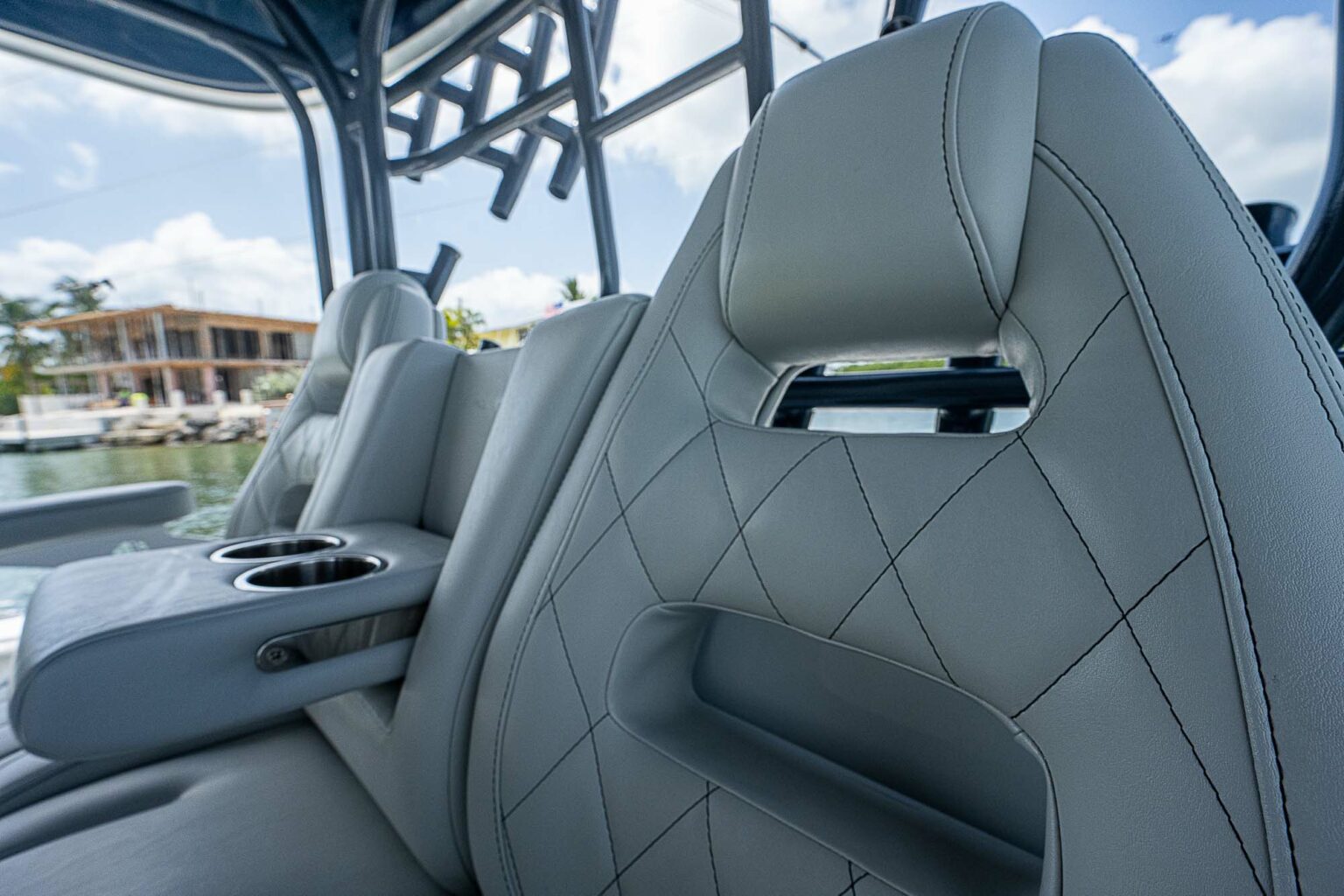 This 2021 42 Freeman is a fishing machine! It has double row seating, a rigging station, chiller plates, outriggers, foldable tower with controls, Garmin electronics, JL Audio Sound System, and more! This boat is perfect for fishing the USA or doing trips to the Bahamas! The engines currently have right at 1000 hours currently and have platinum warranty until December 2025.