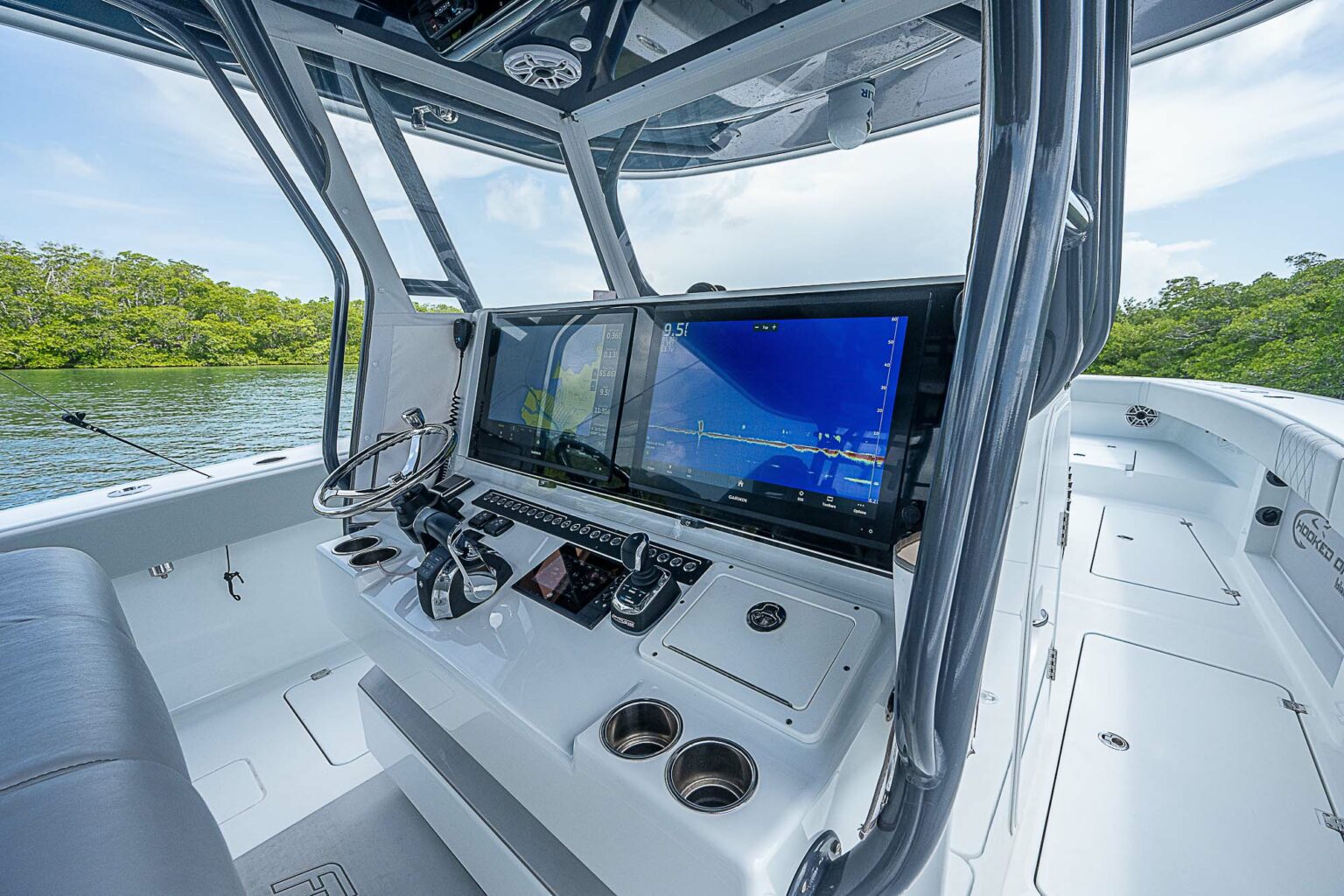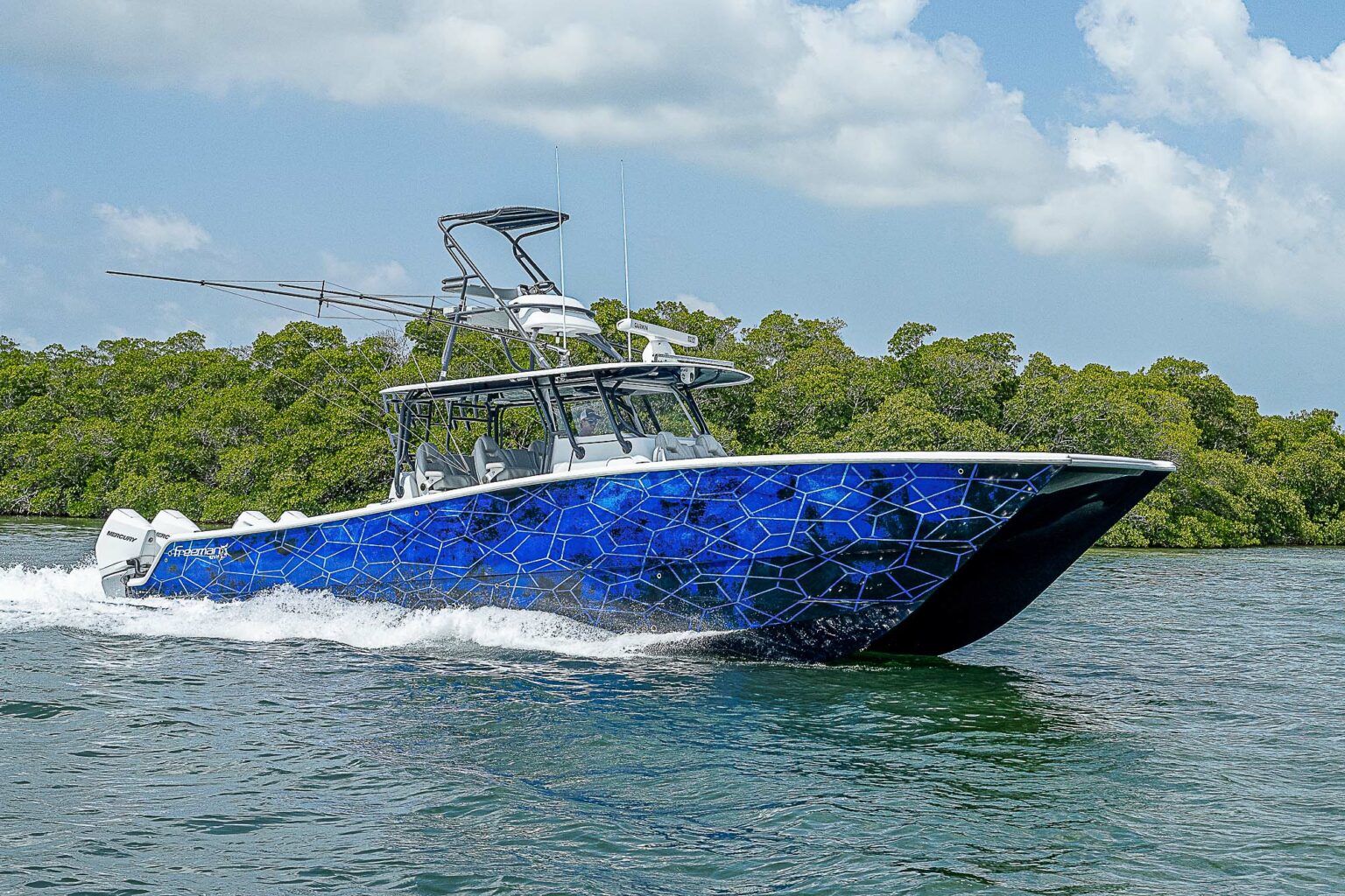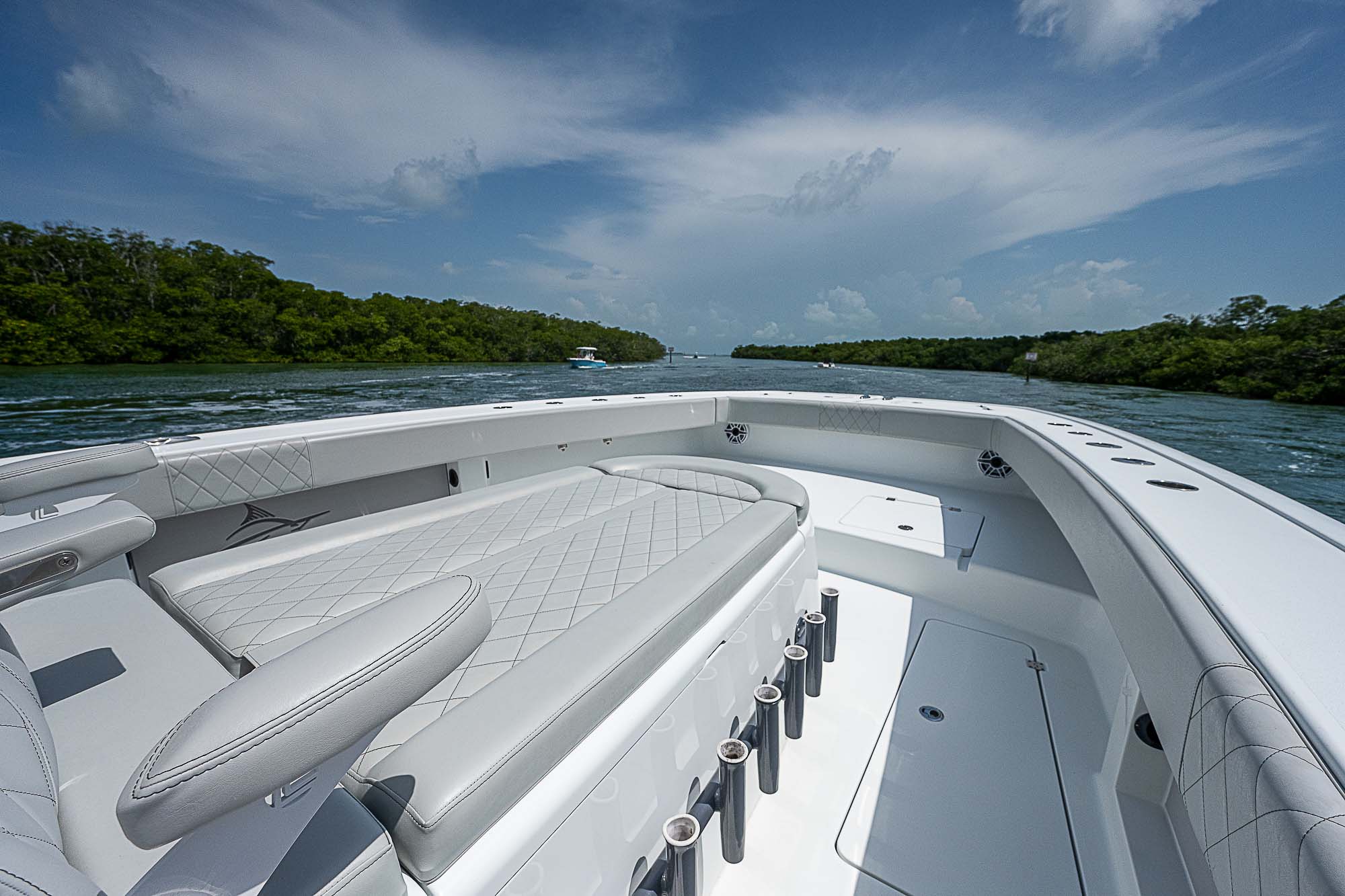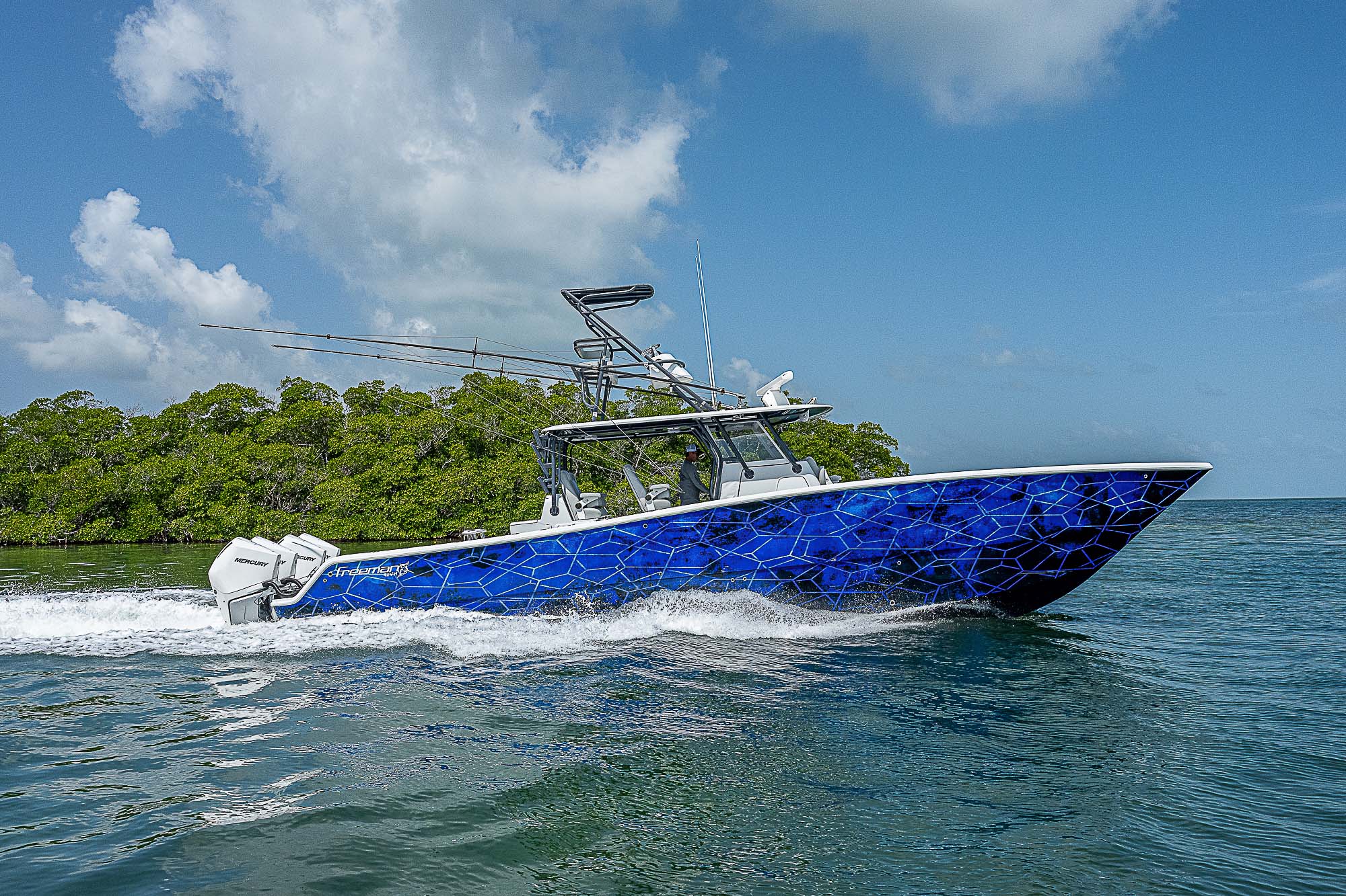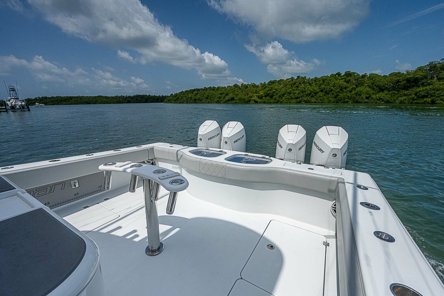 This 2021 42 Freeman is a fishing machine! It has double row seating, a rigging station, chiller plates, outriggers, foldable tower with controls, Garmin electronics, JL Audio Sound System, and more! This boat is perfect for fishing the USA or doing trips to the Bahamas! The engines currently have right at 1000 hours currently and have platinum warranty until December 2025.