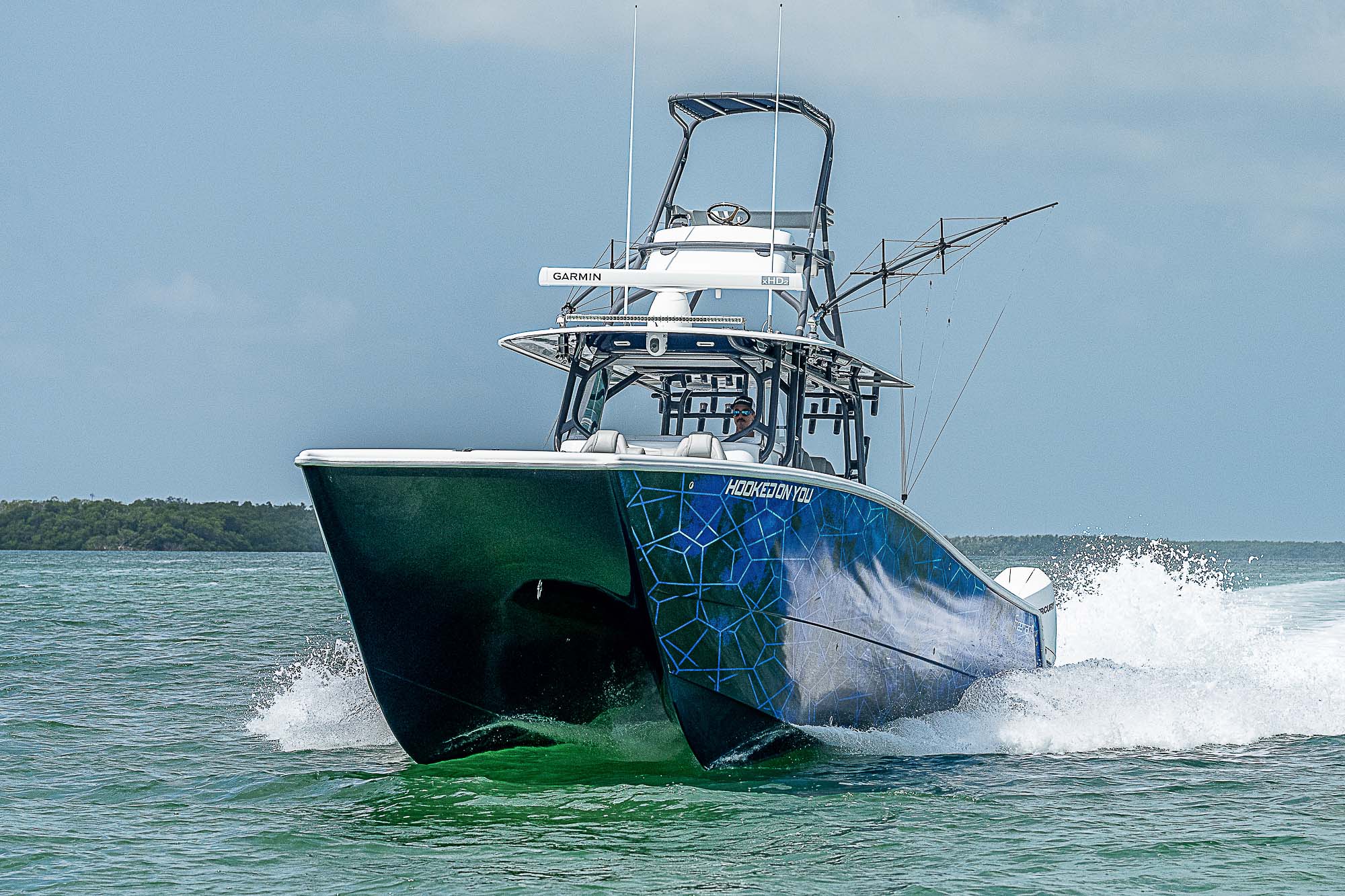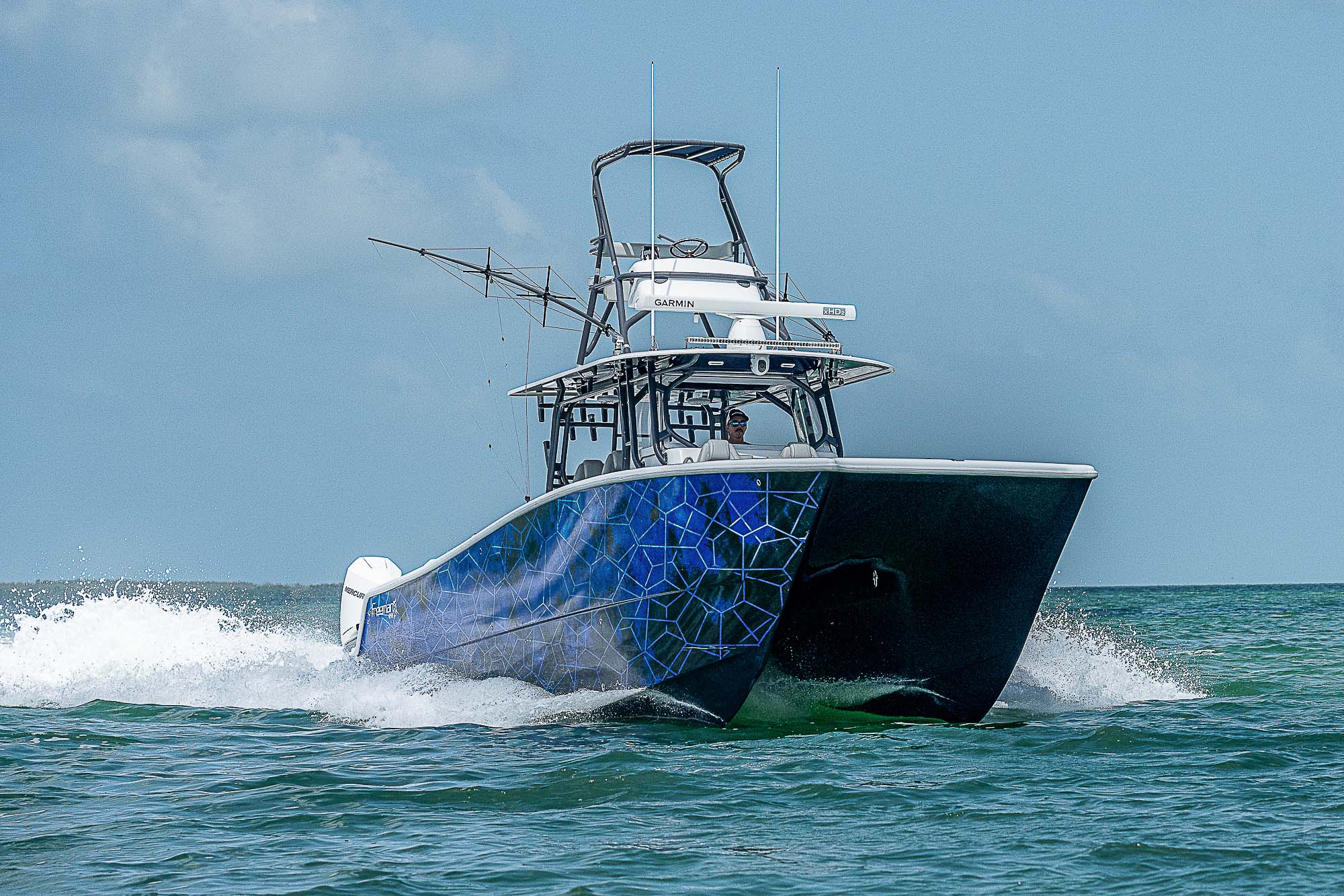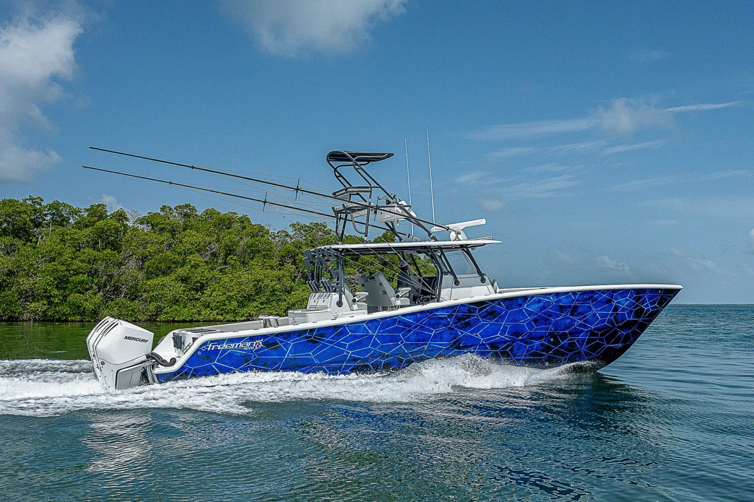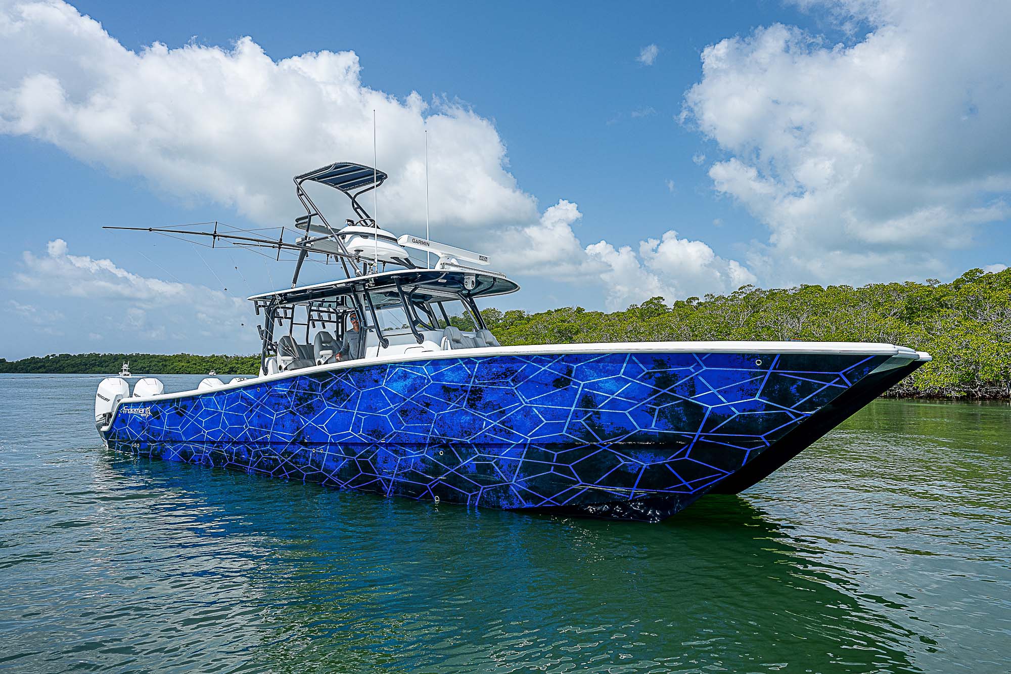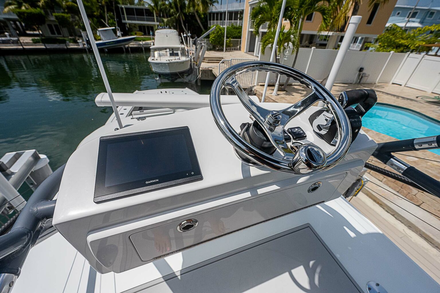 This 2021 42 Freeman is a fishing machine! It has double row seating, a rigging station, chiller plates, outriggers, foldable tower with controls, Garmin electronics, JL Audio Sound System, and more! This boat is perfect for fishing the USA or doing trips to the Bahamas! The engines currently have right at 1000 hours currently and have platinum warranty until December 2025.